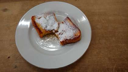 家庭科の授業でフレンチトーストを作りました!自分達で作るとより美味しくなりますね。ぜひ、家でも作ってみよう!