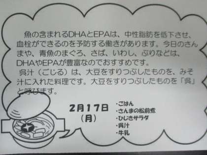 2月17日給食献立 食材・産地