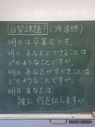 自習課題?(3月18日) 公開日 2020/03/18 更新日 2020/03/18 おしらせ 家庭学習にご活用ください。 ・文字が読みにくくて、申し訳ありません。 ・提出課題です。明日、誰かに何かを提出してください。 ・解答は、あなた自身の心の中に。 いいね(0)