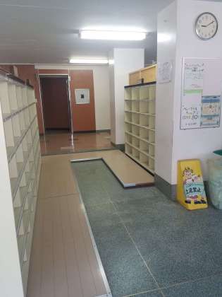 昇降口を入ると、下駄箱があります。時計を見て、遅刻しないように余裕を持って登校できるといいですね。