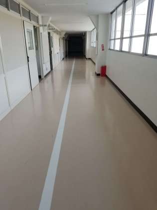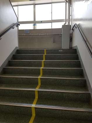 階段や廊下には真ん中にラインが引いてあり、右側通行がしやすいようになっています。