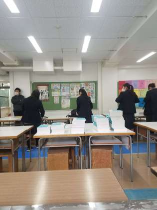 今日は新3年生の教科書配布日でした。3年生も皆時間通りに登校しました。
