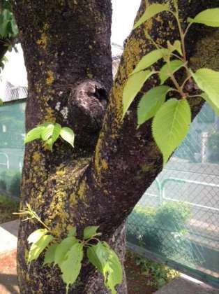 今日はサクラの葉を食べる幼虫を探しにいったのですが、周りの枝の葉は食べられているのに葉が食べられていない枝が1本あり不思議だと思い見てみました。