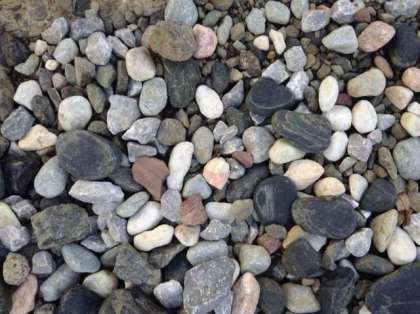 駐車場や細い路地に砂利が敷いてあります。よく見るといろいろな色の石があります。石というか岩石の種類が色によって違うのです。