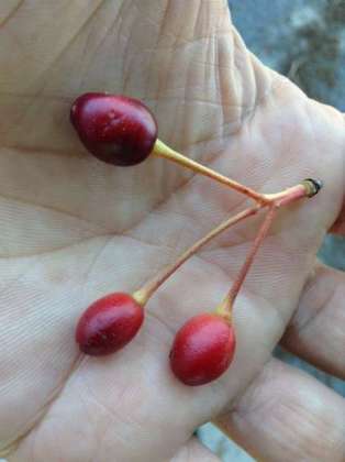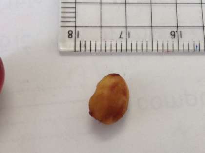 ソメイヨシノの下に熟した果実が落ちていました。赤くて1.3㎝くらいの大きさです。中にはちゃんと1㎝ぐらいの種子があります。もう少し熟した方がいいみたいです。見上げればまだたくさん実がついています。もっと大きくなったらどうなるのか?味も興味深いですね。