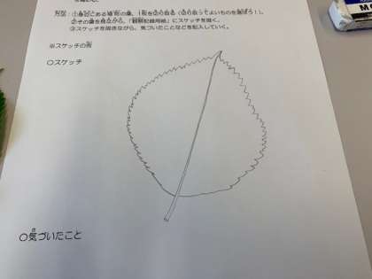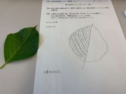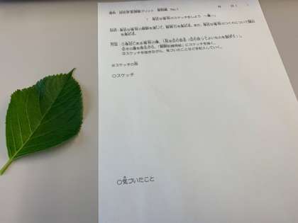 1枚目:私は右利きなので、葉をプリントの左側に置きました。