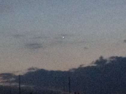 まだ明るいですが金星はとても明かるいので見えます。一番星ですね。(写真中央)
