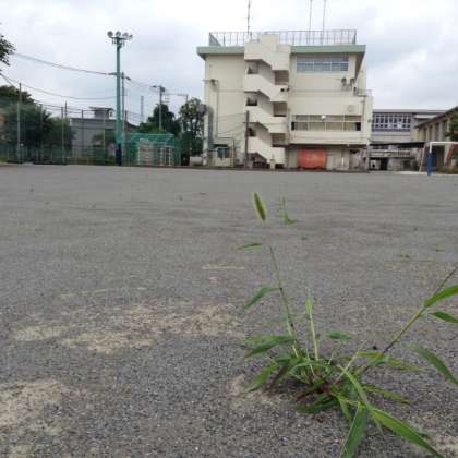 校庭の真ん中では雑草もたくましく育っていました。人が活動しないとこうなるのですね。