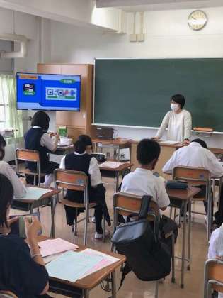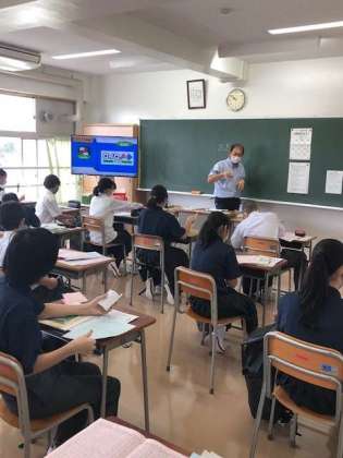 明日、ロイロノートのテスト配信がある1年生。どんなものかプリントを見ながら説明を聞いています。