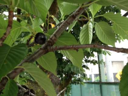 サクラの果実はほとんどが木から落ちてしまいました。でも木に残っているものは「食べごろ」といった感じです。