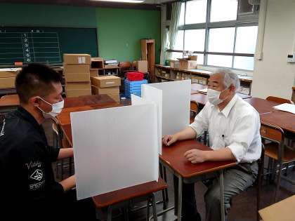 来週22日より全校生徒が朝からの登校となります。教室ではクラス全員での一斉授業を行いますので世田谷区から飛沫感染予防のためにパーティションが配布されました。