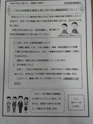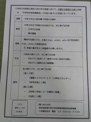 令和3年度都立高校入試における出題範囲等について