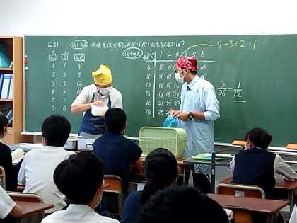 配膳時は教員もエプロン、三角巾で行いました。