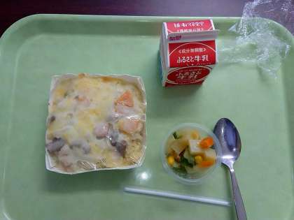 22日は給食の再開となりました。品数も少なく安全面、配膳を配慮したメニューですがとてもおいしくいただきました。