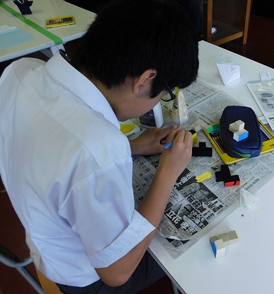バランスとんぼの土台づくり、また、立体模型として3Dパズルを作成しています。