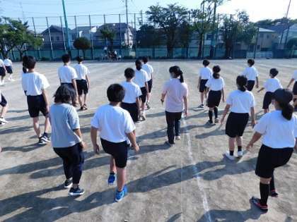 この日は、整列隊形の確認、ラジオ体操、応援席の確認、入場行進の練習などを行いました。