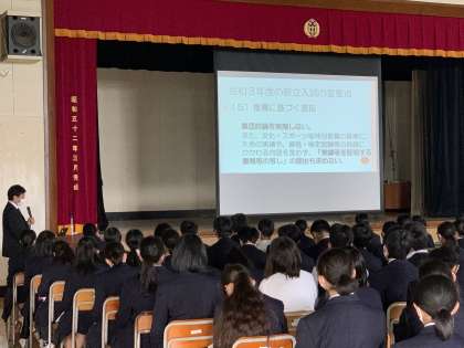 第二回進路説明会 公開日 2020/10/24 更新日 2020/10/24 おしらせ 10月24日土曜日に、第二回進路説明会を実施しました。今後の進路関係の日程についてや、今年度入試の変更点について、主に説明しました。 来週には、三年生の第二回進路面談が実施されます。進路決定に向けて各ご家庭でもう一度、話し合ってみてください。 いいね(0)