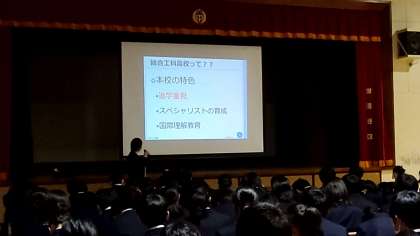 午後は都立総合工科高校、都立芦花高校、都立神代高校の先生方を招いて、各高校の特色や各学科についての講話をして頂きました。