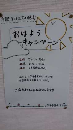 12月21〜25日に学年委員が挨拶を活発化させるために、取り組んでいます。