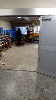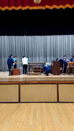 窓や舞台、キャットウォークの落ち葉を拾ったりと、掃除場所が広くても分担しながら取り組んでいました。