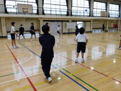 バレーボールを練習から一緒に行い、最後はソフトバレーボールを使って、対戦しました。