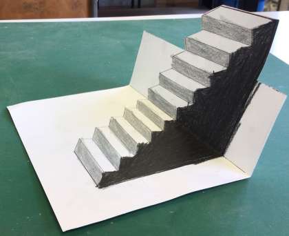 I組 美術「トリックアート〜階段?」 公開日 2021/03/04 更新日 2021/03/04 I組 不思議な世界へ、ようこそ 上の写真を見て、階段だと思ったあなた、実はそうではありませんよ。 さて、いったいどうなっているのでしょうか?? いいね(0)
