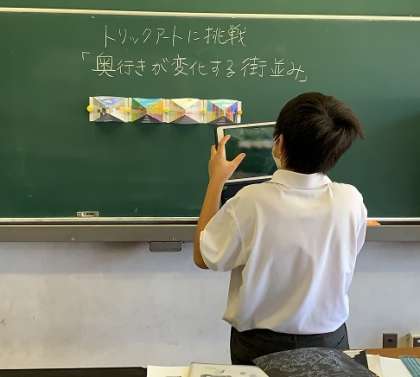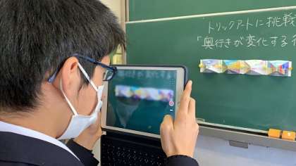 先日、アップしていた「トリックアート」の写真は、実は生徒がiPadで撮影したものです。