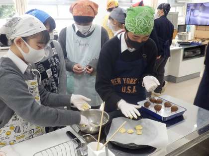 どのクラスも楽しく班ごとに協力して作り上げていました。卒業しても料理やお弁当作りなど頑張ってください!