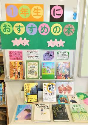 今月図書室では、1年生のみなさんにおすすめの本を並べています。