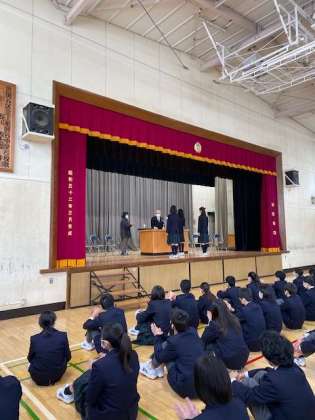 吹奏楽部の打楽器三重奏のグループが、日本ジュニア管打楽器コンクール本選考会にて金賞を受賞いたしました。