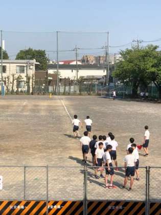 体育の授業で50mの計測です。
