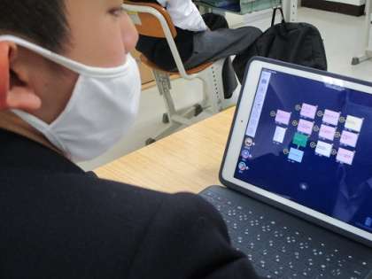 I組 〜iPadを活用した授業〜 公開日 2021/04/22 更新日 2021/04/22 I組 報道されているとおり、東京都にも3度目の緊急事態宣言が発出される見通しとなっています。 4月22日(木)、I組では、新入生も含めて、iPadやオンラインを活用した授業を行いました。 新入生も、「小学校時代に「ロイロノート」を活用したことがあります!」と、発言していました。円滑に導入できそうだな、と思いました。 今後、いかなる状況においても、教育活動が維持できるよう、励んでまいります。 いいね(0)