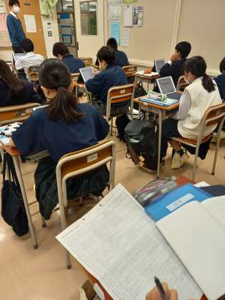 問題集を解く生徒、その日の授業の振り返りを書く生徒、オンライン学習ツール「Qubena」で学習する生徒