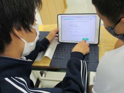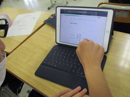 時間制限もあったり、直接iPadに記入する問題もあったりと、生徒たちは熱中している様子でした。