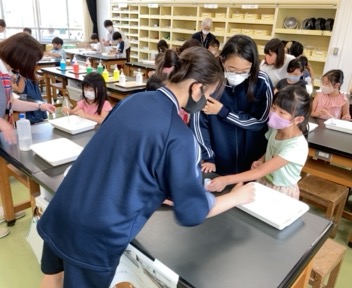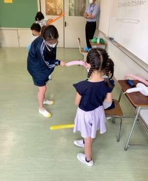 本日28日、烏山小学校のサマースクールのサポートに本校の1.2年生が参加しました。