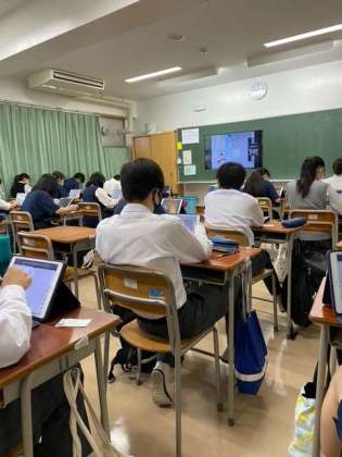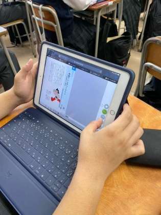 今日はデジタル教科書を使ってzoomで道徳の授業を行っています。