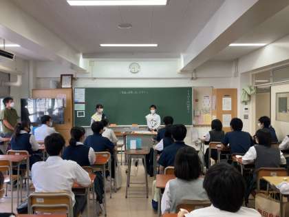 クラスでの選挙運動では、他学年にも行くために、生徒たちは緊張している様子でしたが、しっかりと公約を話していました。