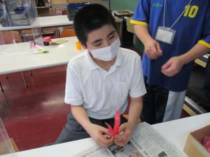 「ポイント釘作り」では、ビニールテープ4枚を釘に結び付けて赤・青・緑・ピンクのポイント釘を200本くらい作りました。