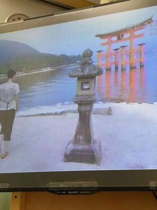 3月に延期になった修学旅行は、広島市内、宮島を訪れる予定となりました。宮島について、先生から歩く経路、表参道のお話、映像と盛りだくさんの内容でした。