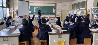 どの授業でも共通しているのが生徒全員が挙手をすることです。ハンドサインがあり、わからなくても「分かりません」と言う反応をしています。