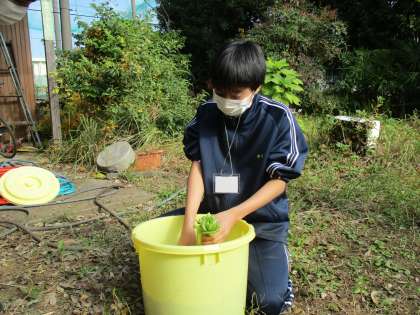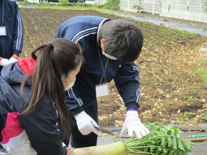 I組 農業体験 1 公開日 2021/11/22 更新日 2021/11/22 I組 11月17日(水)・11月18日(木)に農業体験に行ってきました。毎年、北島農園さんがI組の体験を快く受け入れてくださっています。 初日は「大根の収穫」、「ネギの収穫」、「銀杏の殻むき」を行いました。写真は大根の収穫、大根の葉を切る作業、大根を洗う作業の様子です。 いいね(0)