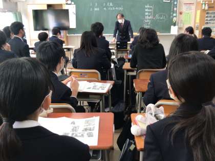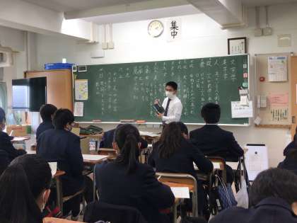 高校訪問授業1 公開日 2021/12/10 更新日 2021/12/10 おしらせ 5.6時間目は、都立高校4校の先生方にお迎えし、2年生に向けて授業を行っていただきました。 都立千歳丘高等学校は「漢字学」の授業です。 漢字の成り立ちについて、生徒もクイズ感覚で考えています。 都立駒場高等学校は「世界史」の授業です。 時計やシンデレラの話など、ワクワクするような内容です。 いいね(0)