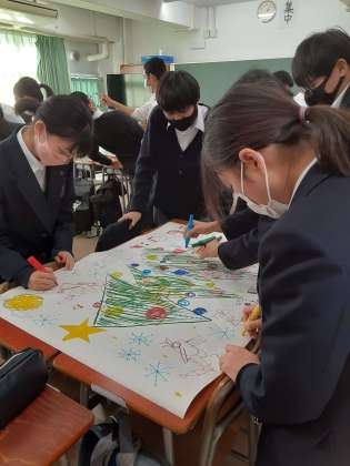 今日は席替えをした新しい班でエンカウンターとして共同絵画を行いました。