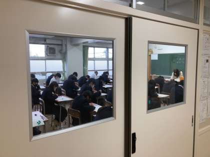 本日11日、1年生は始業式の後、3学期の目標を立て、英語と数学の確認テストを行っています。