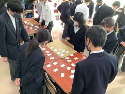 I組でも実施した「百人一首」に、一緒に取り組みました。
