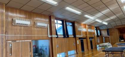 冬は寒く、夏は暑い本校の格技室なのですがこれからエアコンがあれば様々な教育活動で使用することができます。