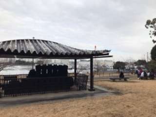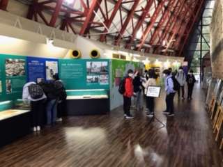 第五福竜丸を見学の班が全員到着し、見学をしています。