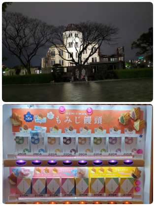 修学旅行 セレモニー 公開日 2022/03/13 更新日 2022/03/13 おしらせ 原爆ドーム前でセレモニーを行い、千羽鶴を奉納しました。 22:10消灯です。 現在、みんな怪我もなく健康で過ごしています。 この自動販売機はなんでしょう? いいね(0)