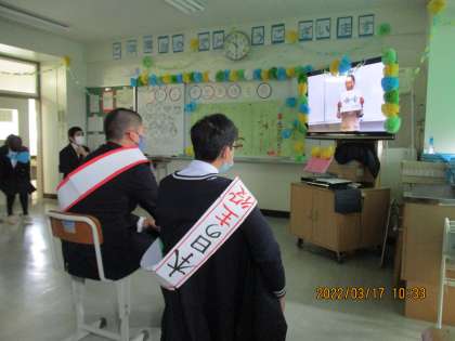 少し時間が経ってしまいましたが、3月17日にI組で「3年生を送る会」をしました。メッセージビデオの作成、会の進行やプログラム、装飾の準備など、この一年間I組を引っ張ってくれた3年生に感謝の気持ちを込めて1・2年生が中心になって準備をしてきました。メッセージビデオやスライドショーを観ながらこの一年間の思い出を振り返り、感謝の気持ちを伝え合うことができました。