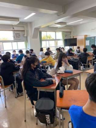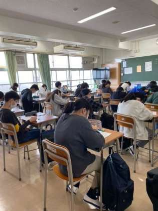 1年生は、はじめての土曜授業で「服装を考える日」でした。TPOに応じて自分で服装を考え、自己表現する日です。今日は、校内めぐり、学級目標を考える、作文「中学生になって」を書くなど行いました。話し合い活動が活発な学年です。